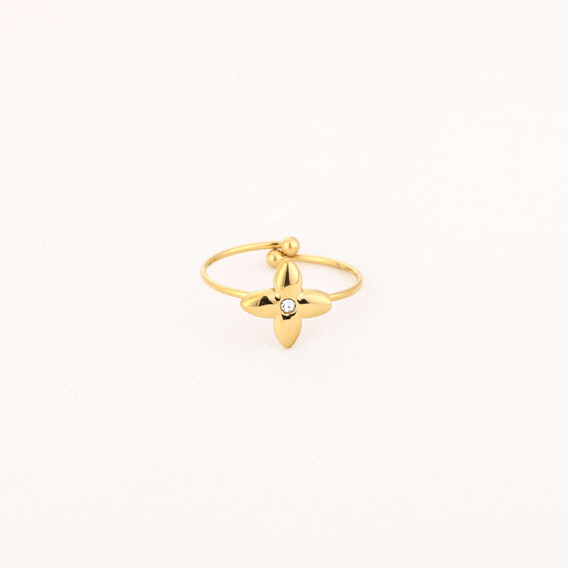 Breng een beetje geluk met je mee – elke dag. Cloverè is een elegante, verstelbare ring met een smal bandje, gemaakt van hoogwaardig goudkleurig roestvrij staal. In het midden schittert een verfijnd klavertjevier met een subtiel steentje, als symbool van geluk, liefde en balans.