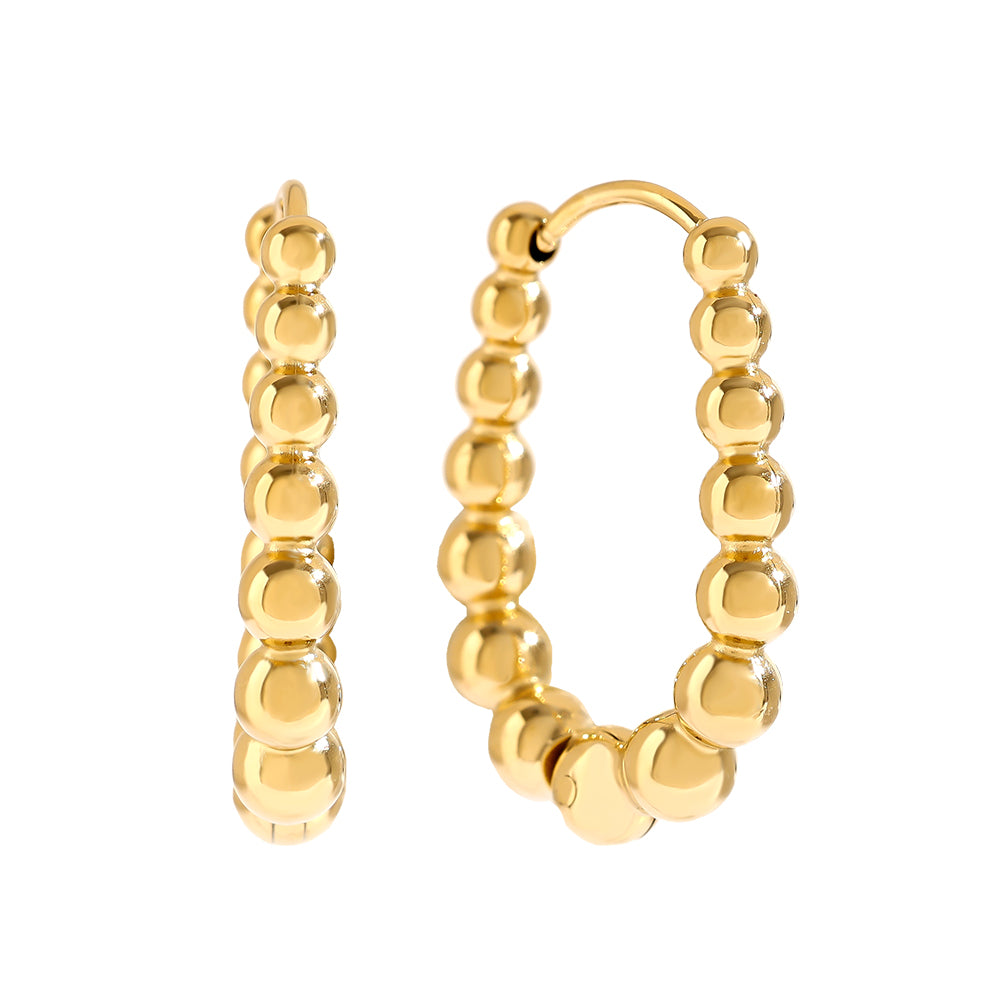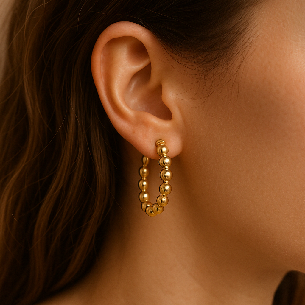Voeg een subtiele speelsheid toe aan je look met de Dots oorbellen— kleine, verfijnde hoepeloorbellen die bestaan uit een rijtje glanzende bolletjes naast elkaar. Deze minimalistische oorbellen zijn perfect voor elke dag, dankzij hun lichte en comfortabele pasvorm.