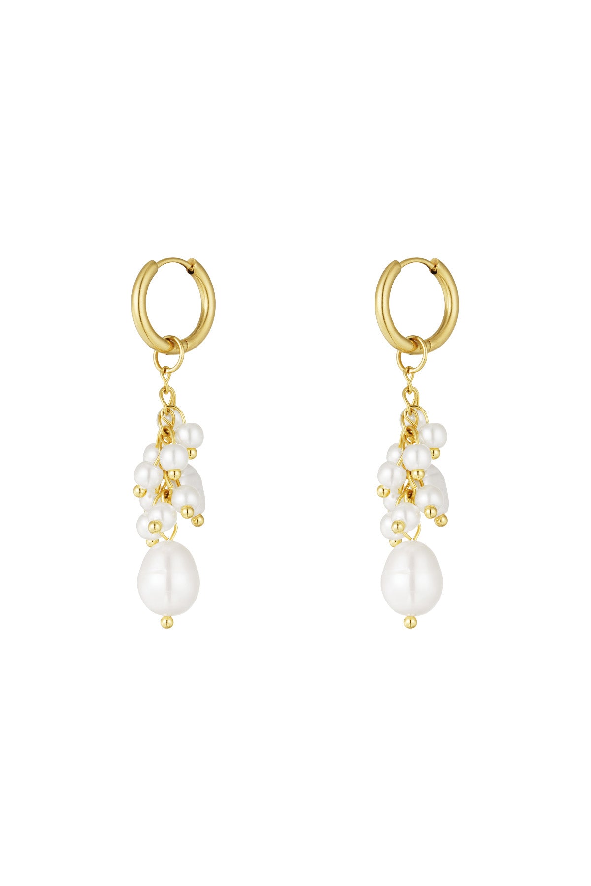 Speelse gouden oorbellen van roestvrij staal met elegante, hangende witte parels die zachtjes meebewegen. Perfect om elke outfit een verfijnde en vrouwelijke touch te geven.