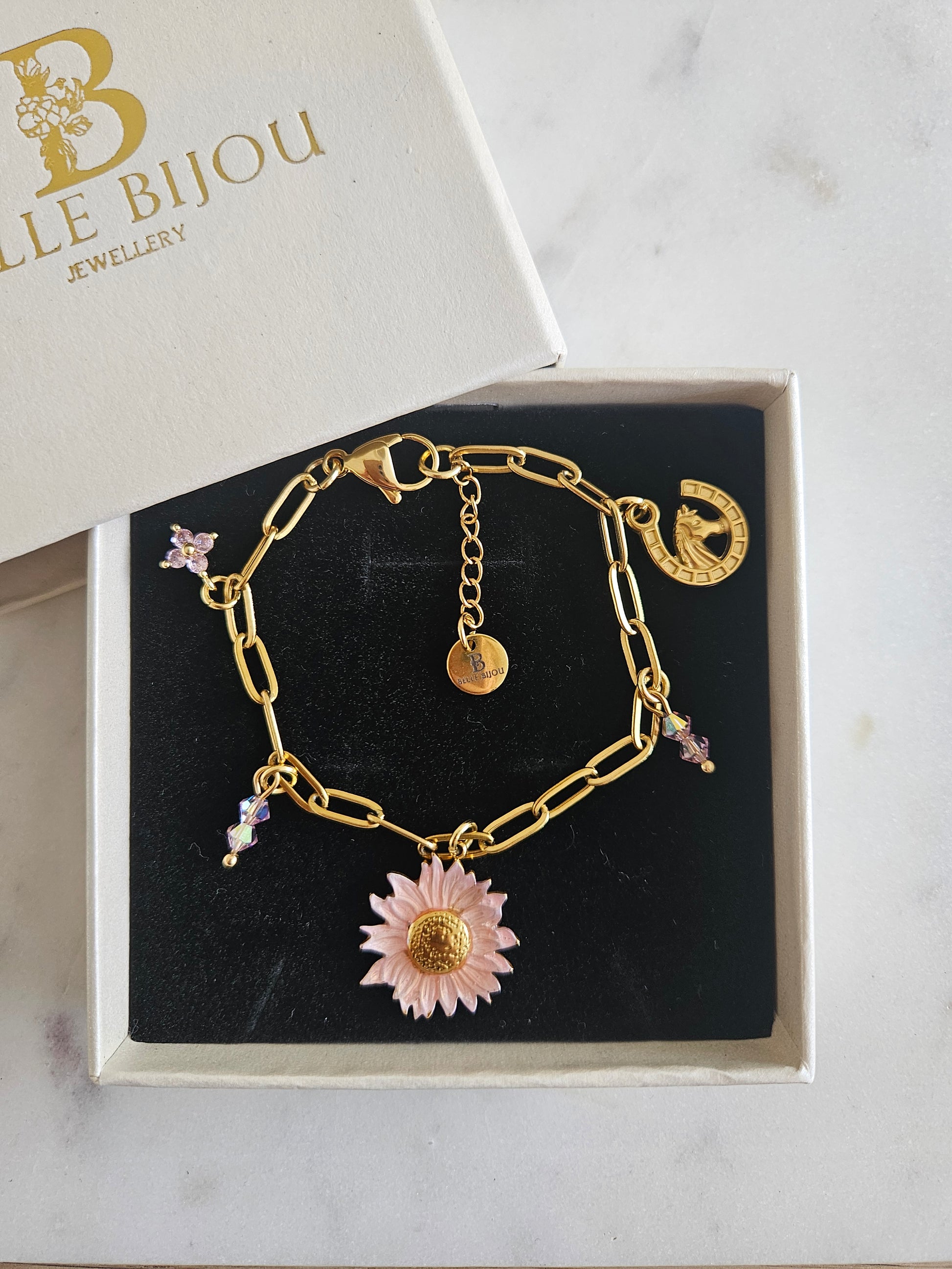 Laat je liefde voor paarden stralen met de Pony Love bedelarmband. Een subtiele eyecatcher voor iedere paardenliefhebber. Deze elegante armband is vervaardigd uit hoogwaardig roestvrij staal (RVS) en uitgevoerd in een warme, gouden kleur die moeiteloos te combineren is met elke outfit.
