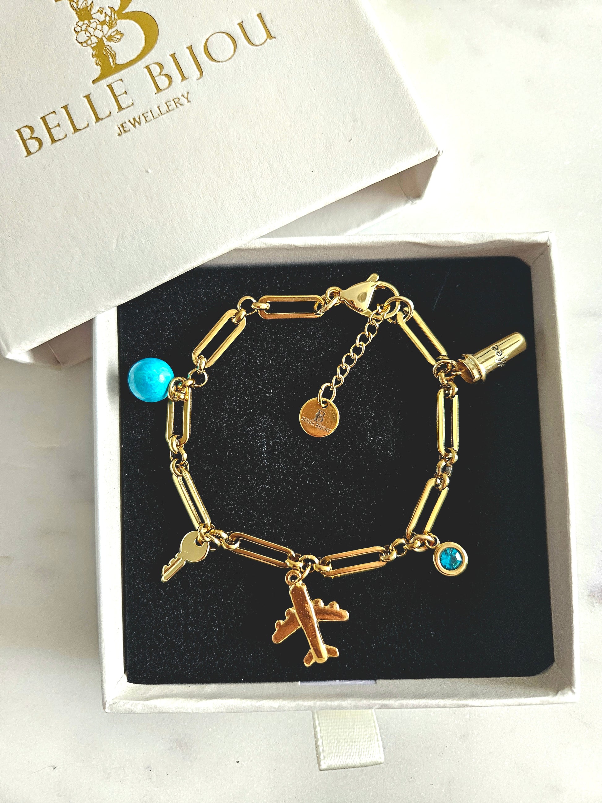 Draag jouw passie voor reizen altijd met je mee met de Travel Armband. Een stijlvolle bedelarmband ontworpen voor avonturiers, wereldreizigers en iedereen die van onderweg zijn houdt. Of reizen jouw werk is of je simpelweg droomt van nieuwe bestemmingen, deze armband herinnert je aan wat je het liefst doet.